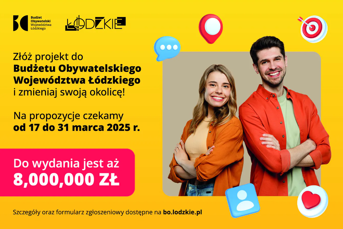 Budżet Obywatelski Województwa Łódzkiego pozwala zmieniać plany w rzeczywistość. Jeszcze tylko do 31 marca czekamy na Wasze projekty. Do wydania jest aż 8 mln złotych! Szczegóły na stronie bo.lodzkie.pl.
